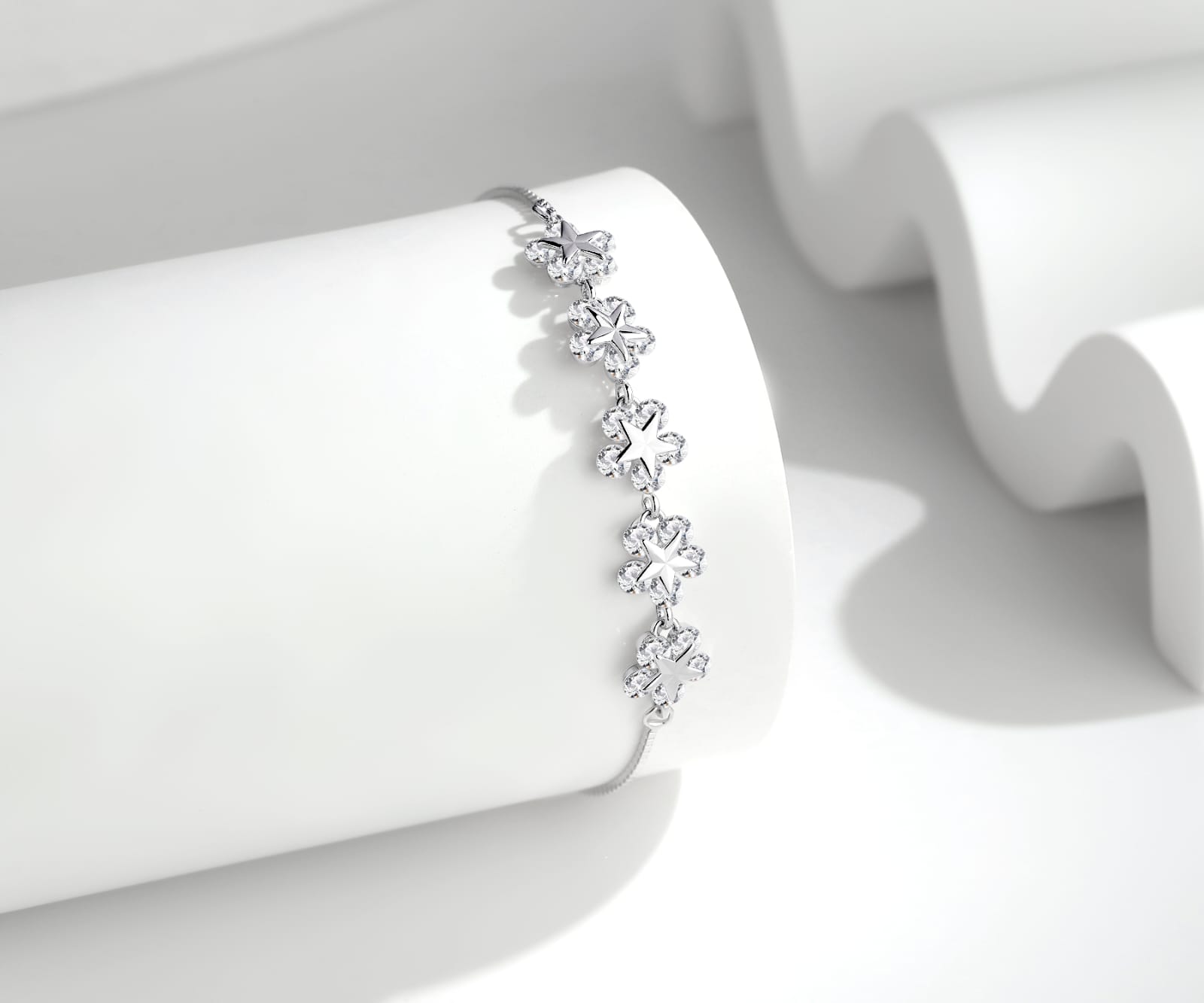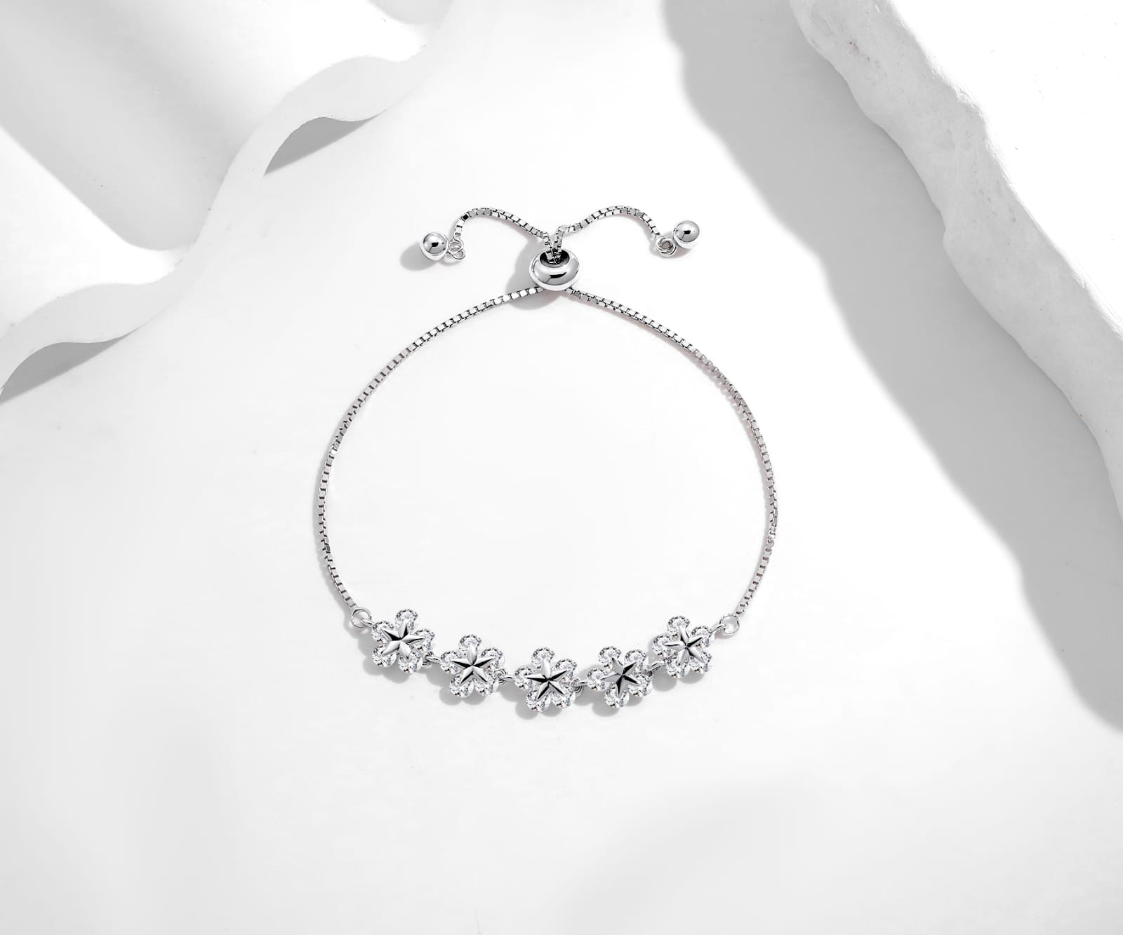 A delicate 925 sterling silver bracelet featuring floral-inspired elements and an adjustable sliding clasp. Lightweight, elegant, and designed for everyday wear as well as special occasions.