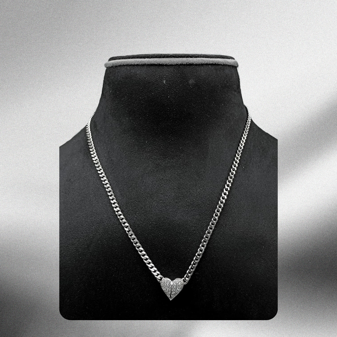 This 925 sterling silver pendant chain is designed with a strong, structured link pattern paired with a stylish heart-shaped pendant. The pendant features subtle stone detailing, adding a refined shine without being overly flashy.